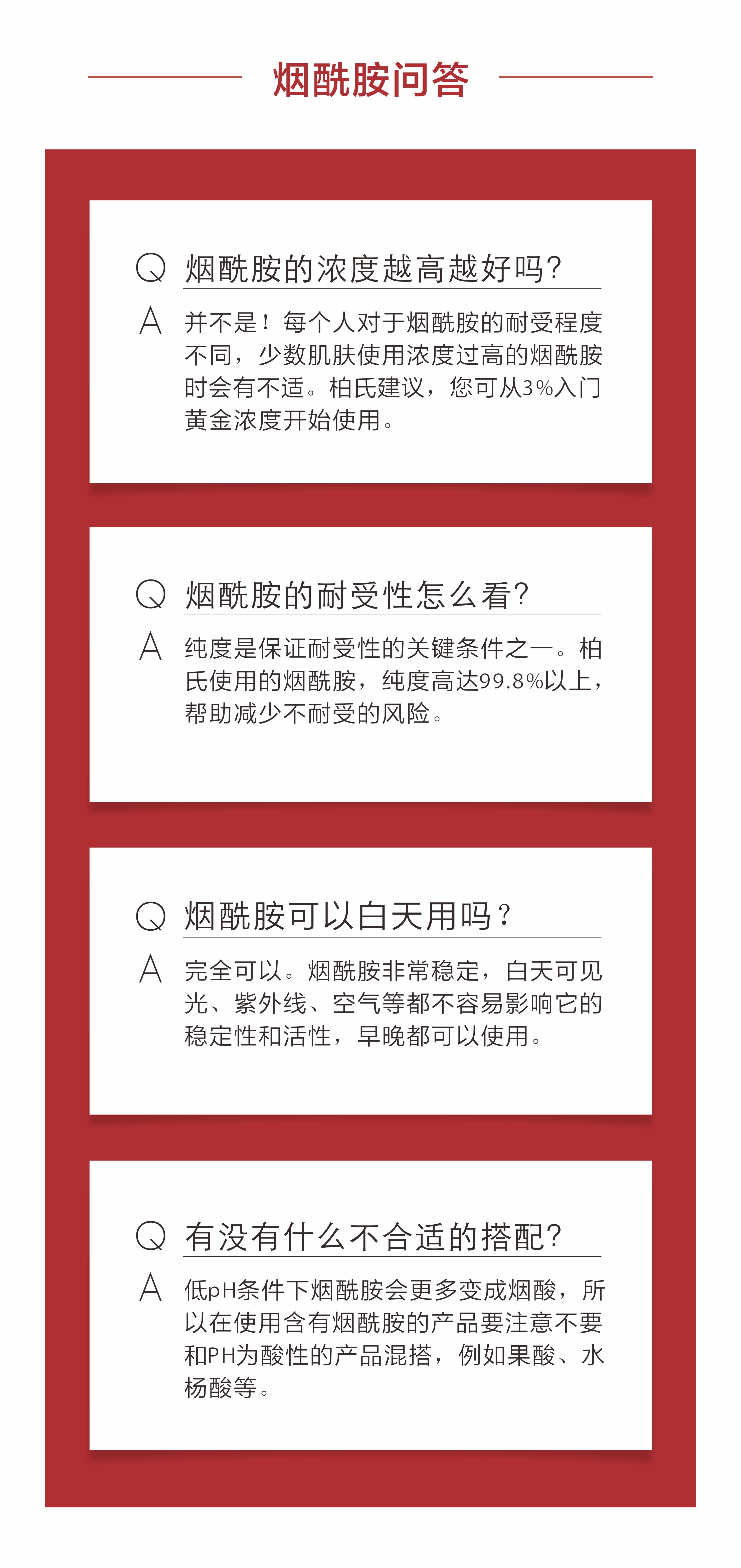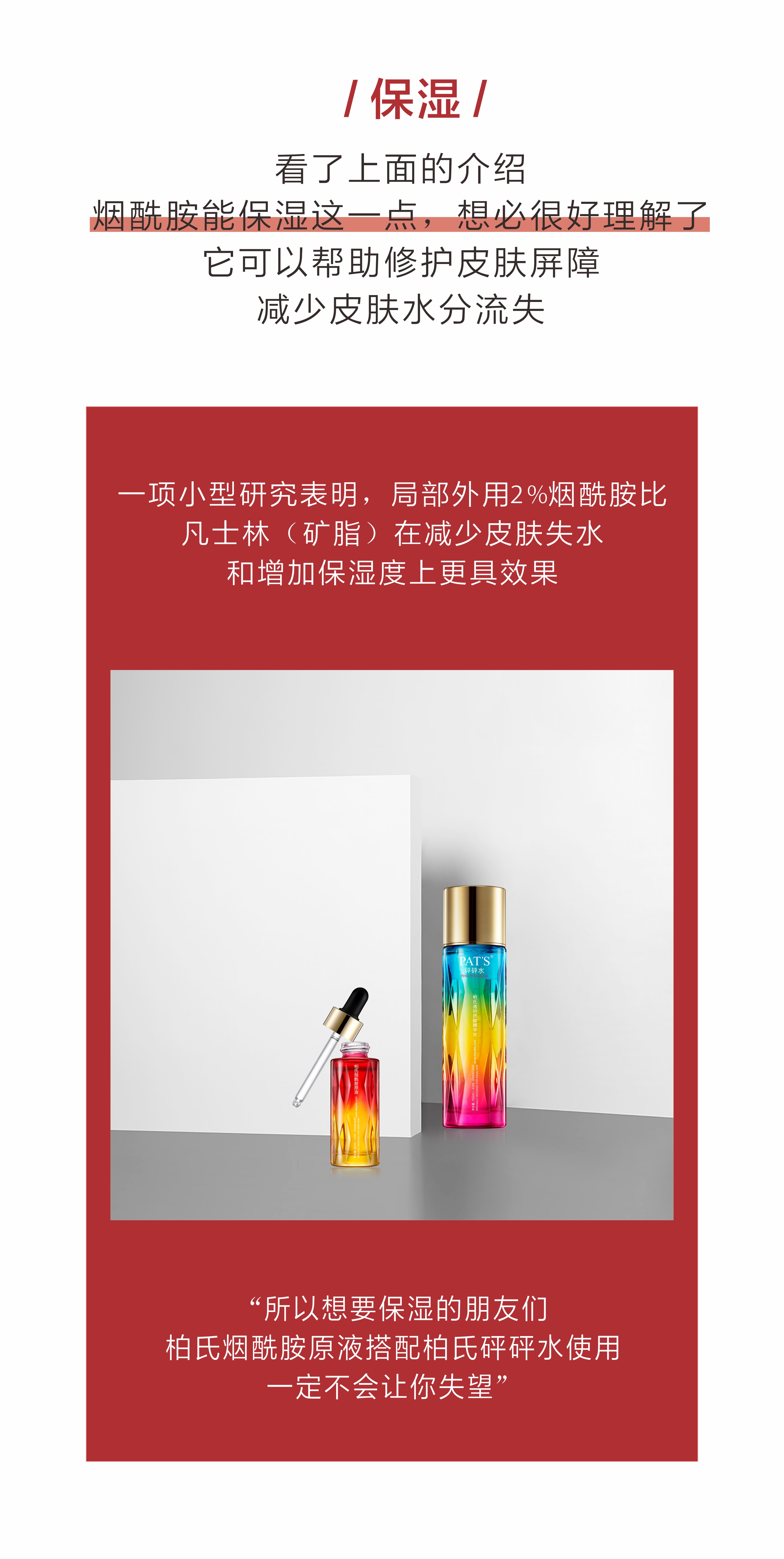 烟酰胺本质是维生素B3(烟酸)的衍生物,在护肤中的主要作用为:美白,淡化黑色素;控油,抑制痘痘; 抗老,改善细纹; 修护,增强皮肤屏障;保湿,保持肌肤水润度,功效看起来非常多,具体到原理上还是有些不同,掌握硬核知识才能将它的功效最大化发挥哦