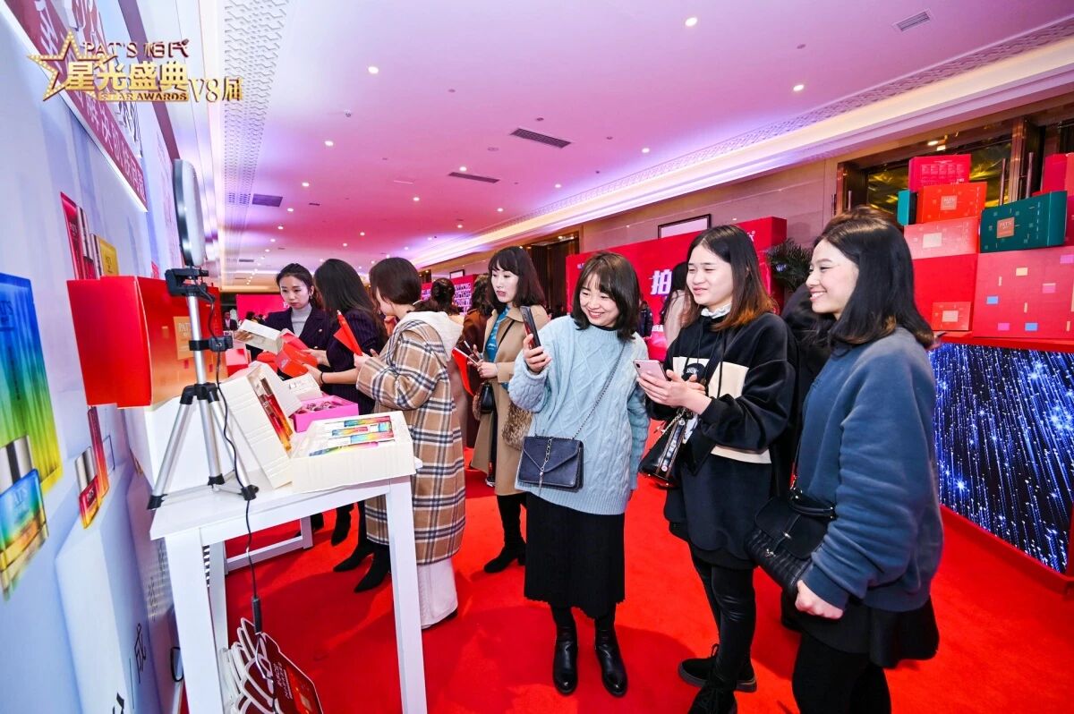 新品亮相环节,由婀娜多姿的美女模特手捧新品款款向台下嘉宾一一展示。