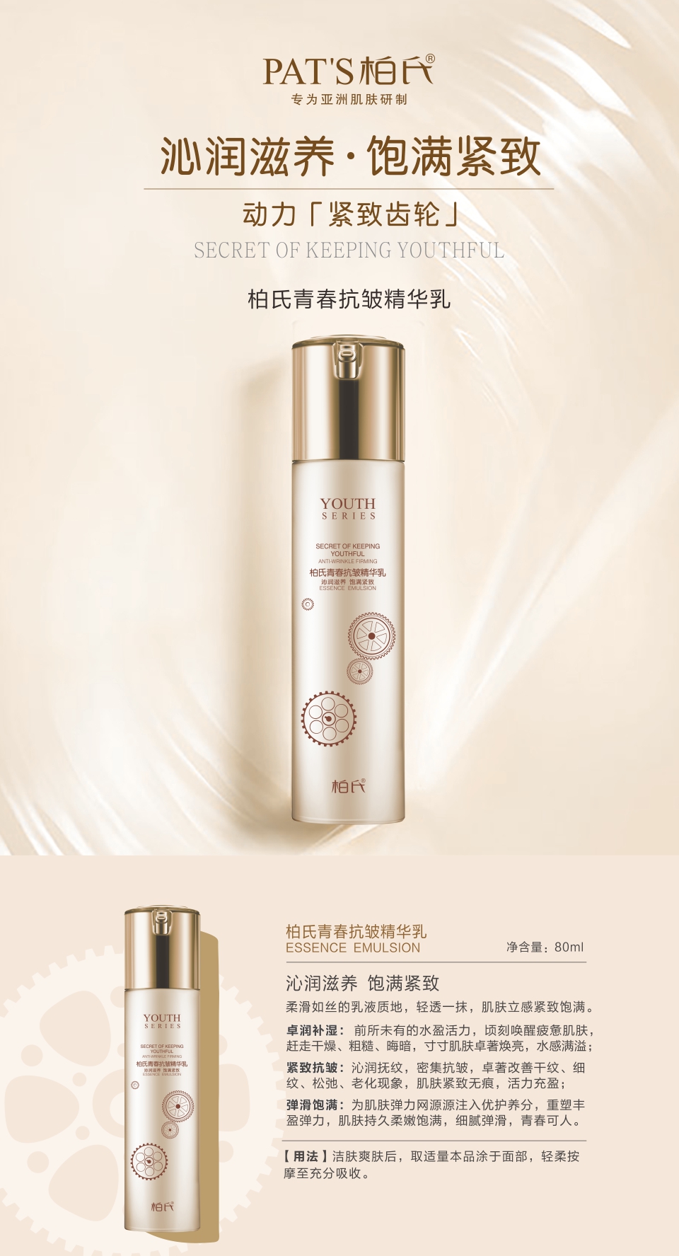 柔滑如丝的乳液质地,轻透一抹,前所未有的水盈活力,顷刻唤醒疲惫肌肤,赶走干燥、粗糙、晦暗,深入沁润抚纹,密集抗皱,卓著改善干纹细纹、松弛老化现象,为肌肤弹力网源源注入优护养分,重塑丰盈弹力,使肌肤持久柔嫩饱满,细腻弹滑,青春可人。