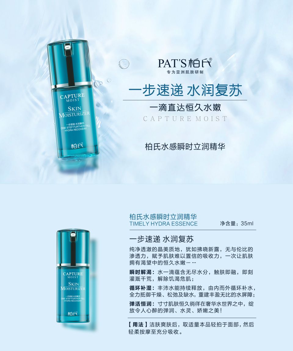 一滴水含无尽水分,触肤即融,持续释放,由内而外循环补水,即刻灌溉干荒,全面抵御干燥松弛及缺水,让寸寸肌肤恒久徜徉在奢华水世界之中,每一层每一面都饱含水分,绽放令人心醉的弹润、水灵、娇嫩之美。