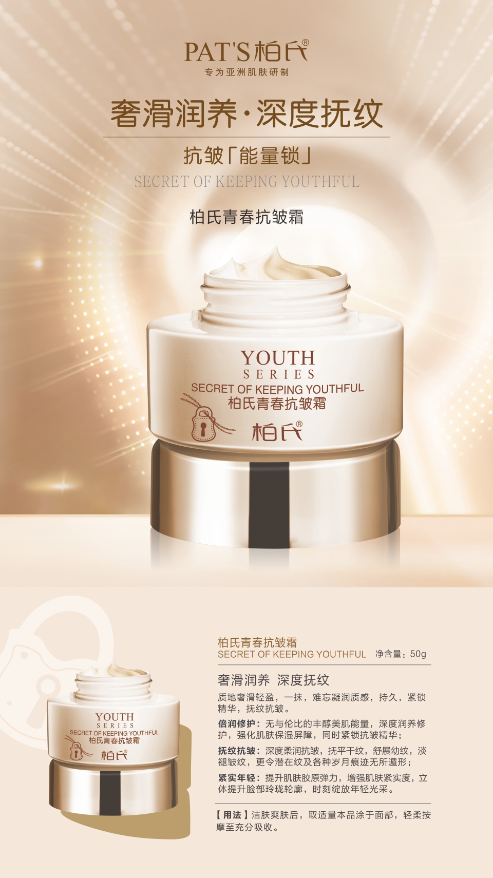 无与伦比的丰醇美肌能量,深入柔润抗皱,抚平干纹,舒展幼纹,淡褪皱纹,深度润养修护,强化肌肤保湿屏障,同时层层紧锁抗皱精华,全面激发肌肤胶原弹力,增强肌肤紧实度,提升脸部玲珑轮廓,时刻绽放年轻光采。
