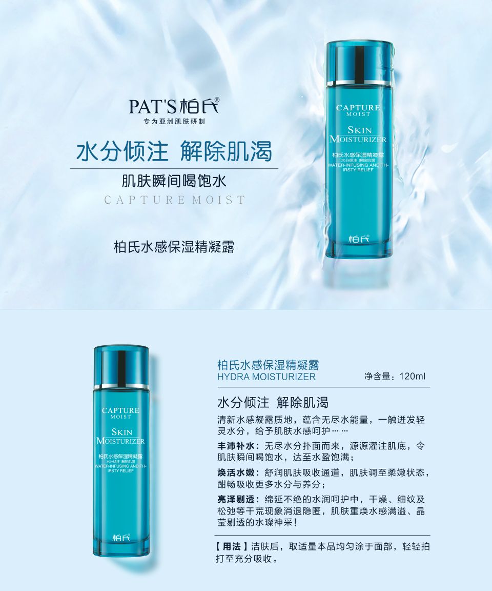 清新水感凝露质地,蕴含无尽水能量,一触迸发轻灵水分,源源灌注肌底,令肌肤瞬间喝饱水,唤醒肌肤水活力,水润肌肤呼吸通道,使肌肤调至柔嫩状态,酣畅吸收更多水分与养分,同时隐匿干燥细纹及松弛等干荒现象,使肌肤重焕水感满溢、晶莹剔透的水璨神采。