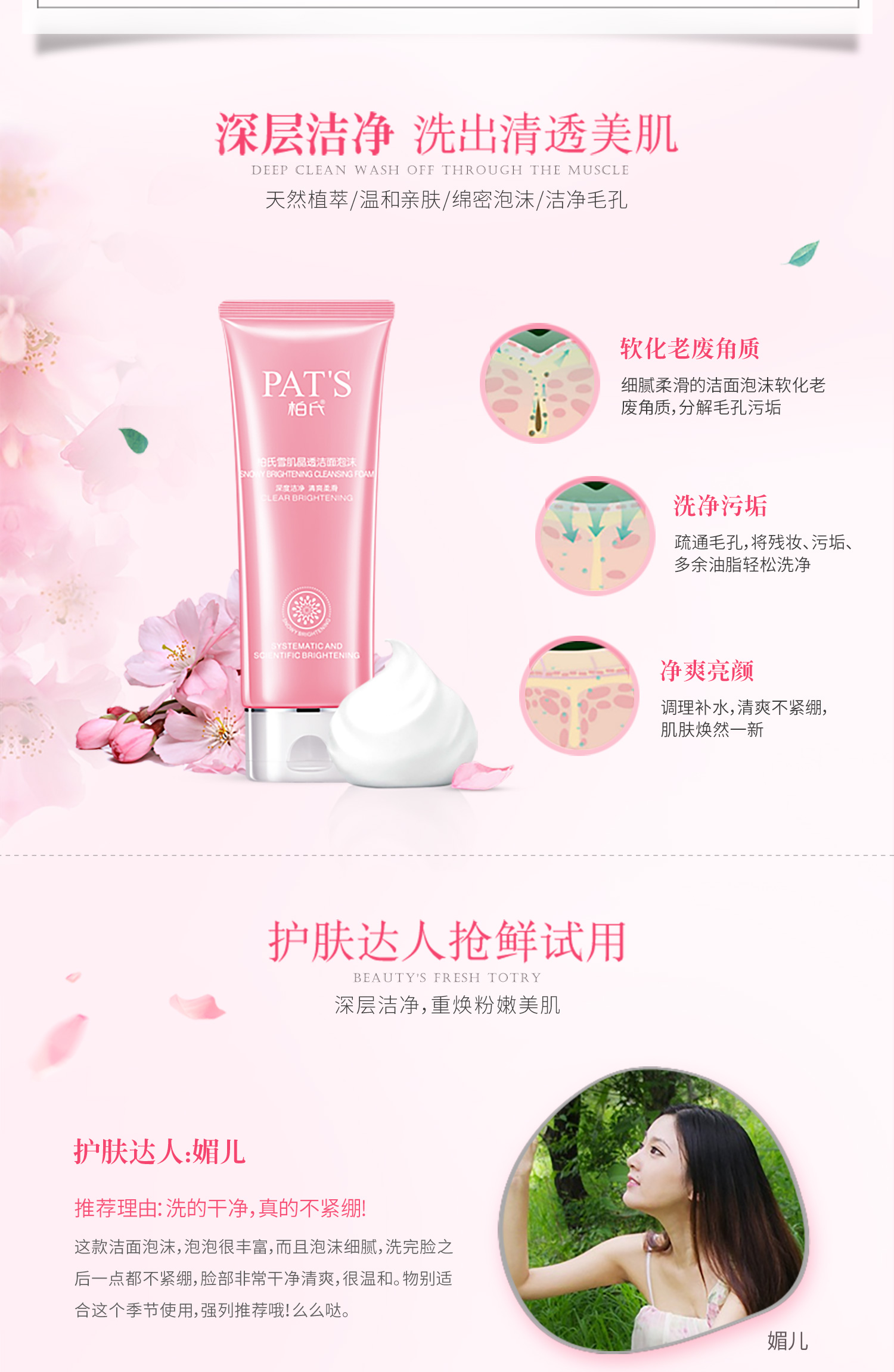 细腻柔滑的洁面泡沫,能将残妆、毛孔污垢、多余油脂都轻松洗净,同步软化老废角质,调理补水,令肌肤净爽亮颜,焕然一新,用后清爽不紧绷。