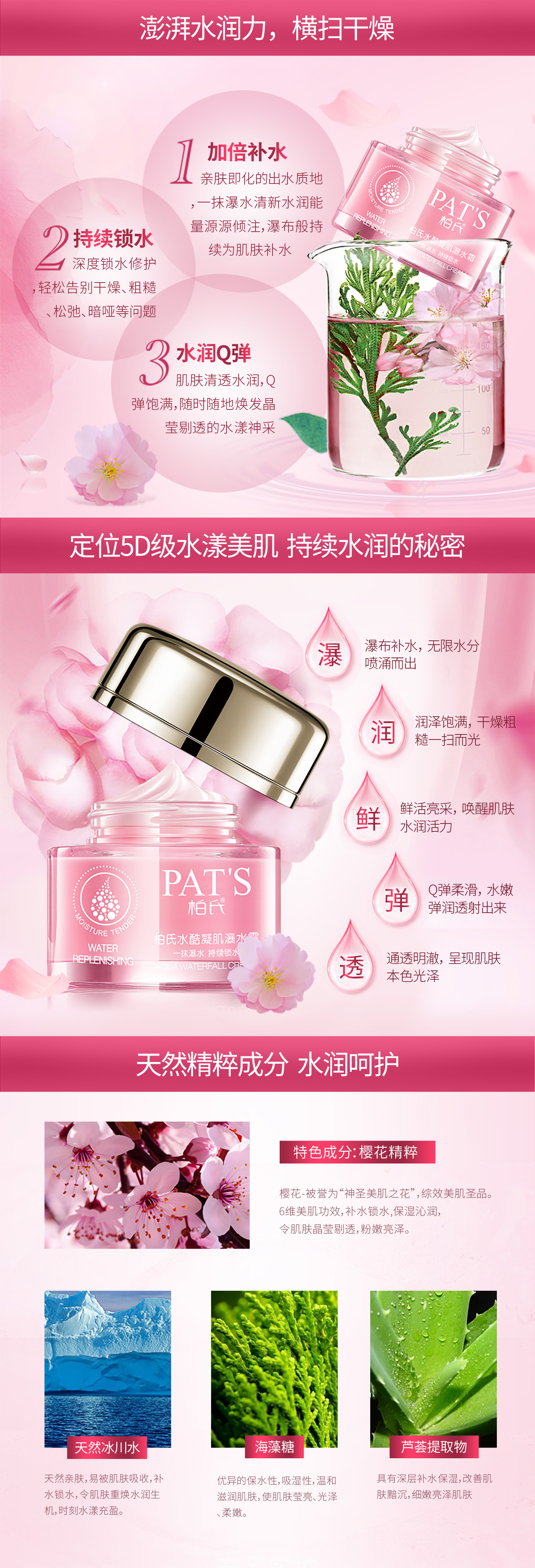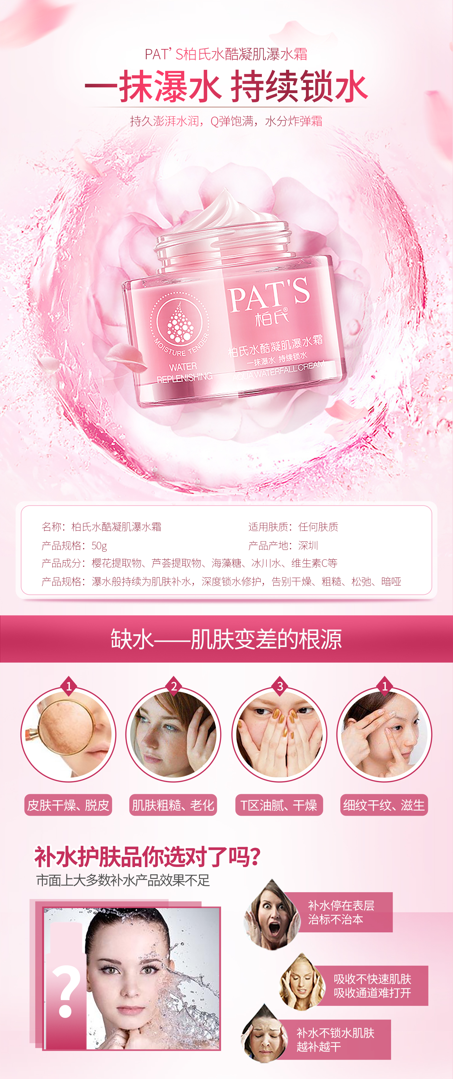 亲肤即化的出水质地,一抹,瞬间化为粒粒水珠,清新水润能量源源倾注,瀑布般持续为肌肤补水,深度锁水修护,轻松告别干燥、粗糙、松弛、暗哑问题,肌肤清透水润,随时随地焕发晶莹剔透的水漾神采!