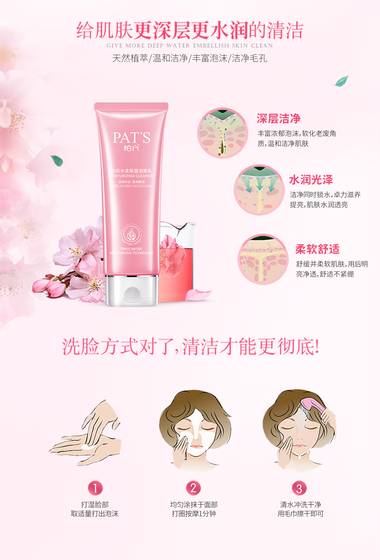 丰润的乳霜质地,给肌肤柔滑轻盈的洁净感觉,能温和带走肌肤污垢、多余油脂及不洁物,在洗脸的同时,为肌肤带来额外的补水滋润,每次清洁都让你的肌肤柔软、舒适、嫩滑,散发晶莹明亮的水质感。